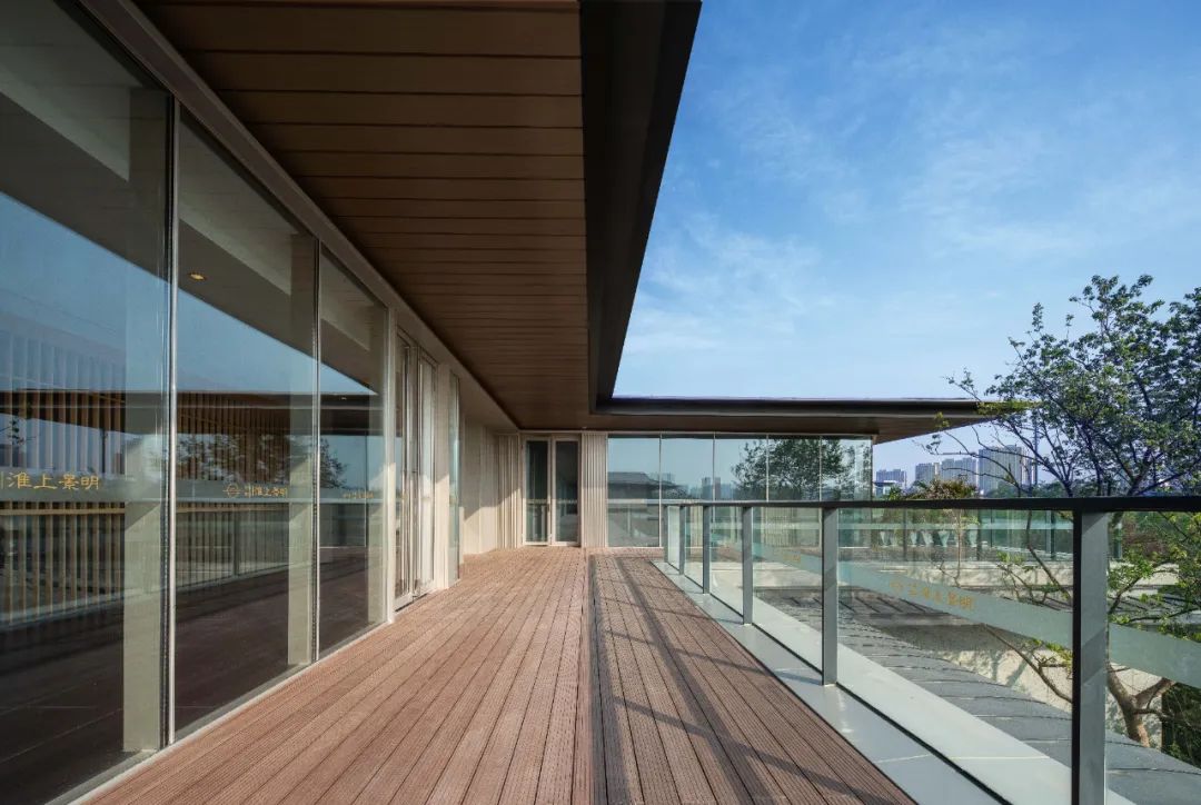 淮安中?;瓷暇懊髟肥痉秴^(qū)在材質(zhì)接口處采用巧妙的“隱形”手法,用大面積高透玻璃、平直歇山屋頂、完整連貫的木紋鋁板吊頂、見光不見燈的收口等充滿韻律感的設(shè)計(jì)來(lái)完善建筑細(xì)部。