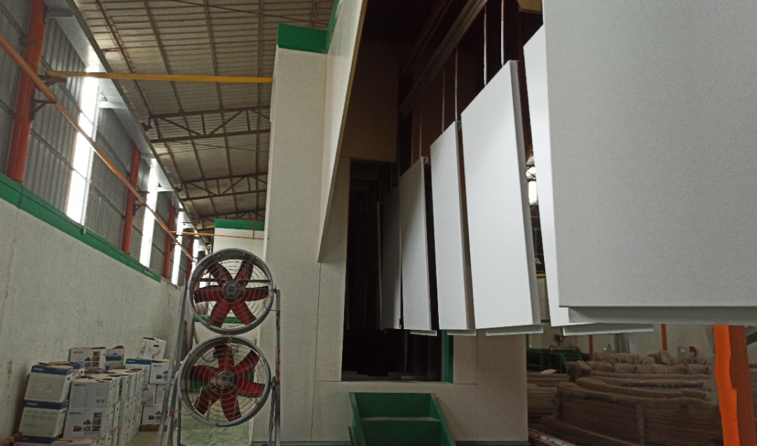 公司采用全套德國(guó)進(jìn)口靜電噴涂生產(chǎn)設(shè)備,全長(zhǎng)500米,軍工數(shù)控機(jī)床,底漆面漆罩光漆全部是自動(dòng)噴,電腦控制噴涂流量和范圍,保證鋁板表面漆膜厚度均勻美觀, 確保爐溫曲線科學(xué)精準(zhǔn)。