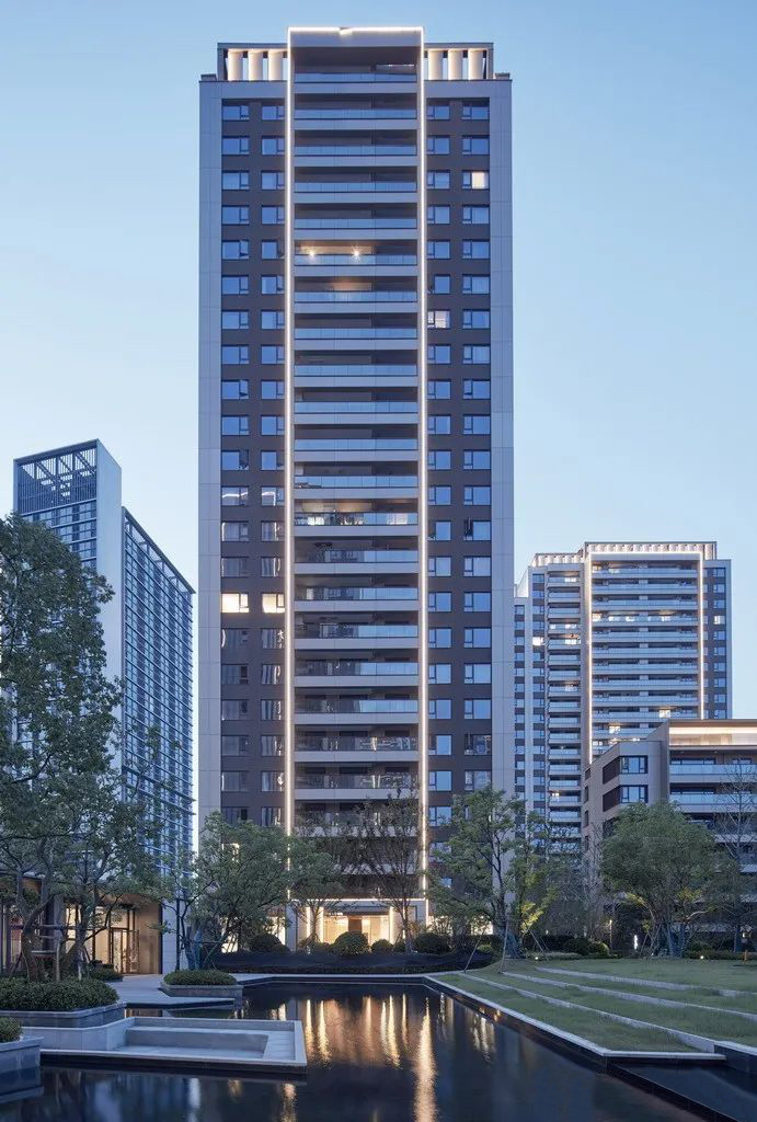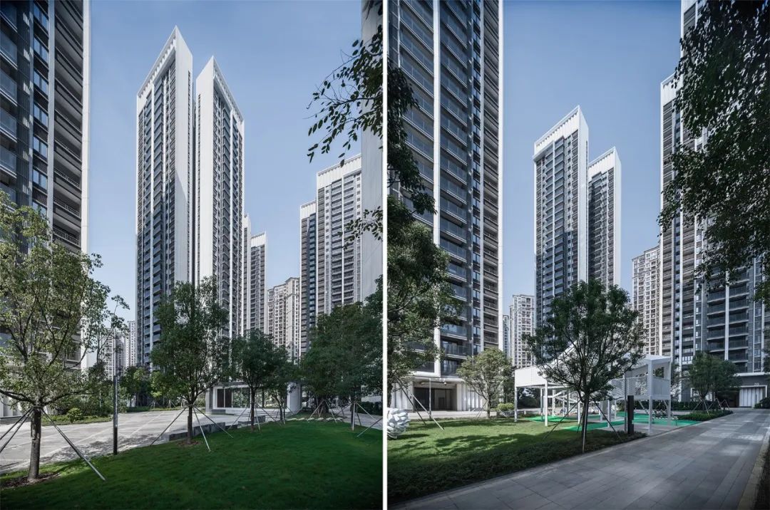 杭州仁恒置地∣香港置地·前灣國際社區(qū)住宅屋頂?shù)拇┛卒X板強(qiáng)調(diào)建筑的藝術(shù)感和方向性。