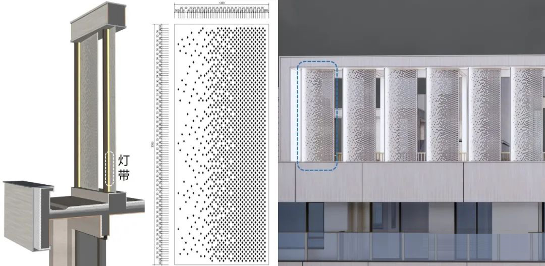 建筑冠部穿孔板及燈光效果圖