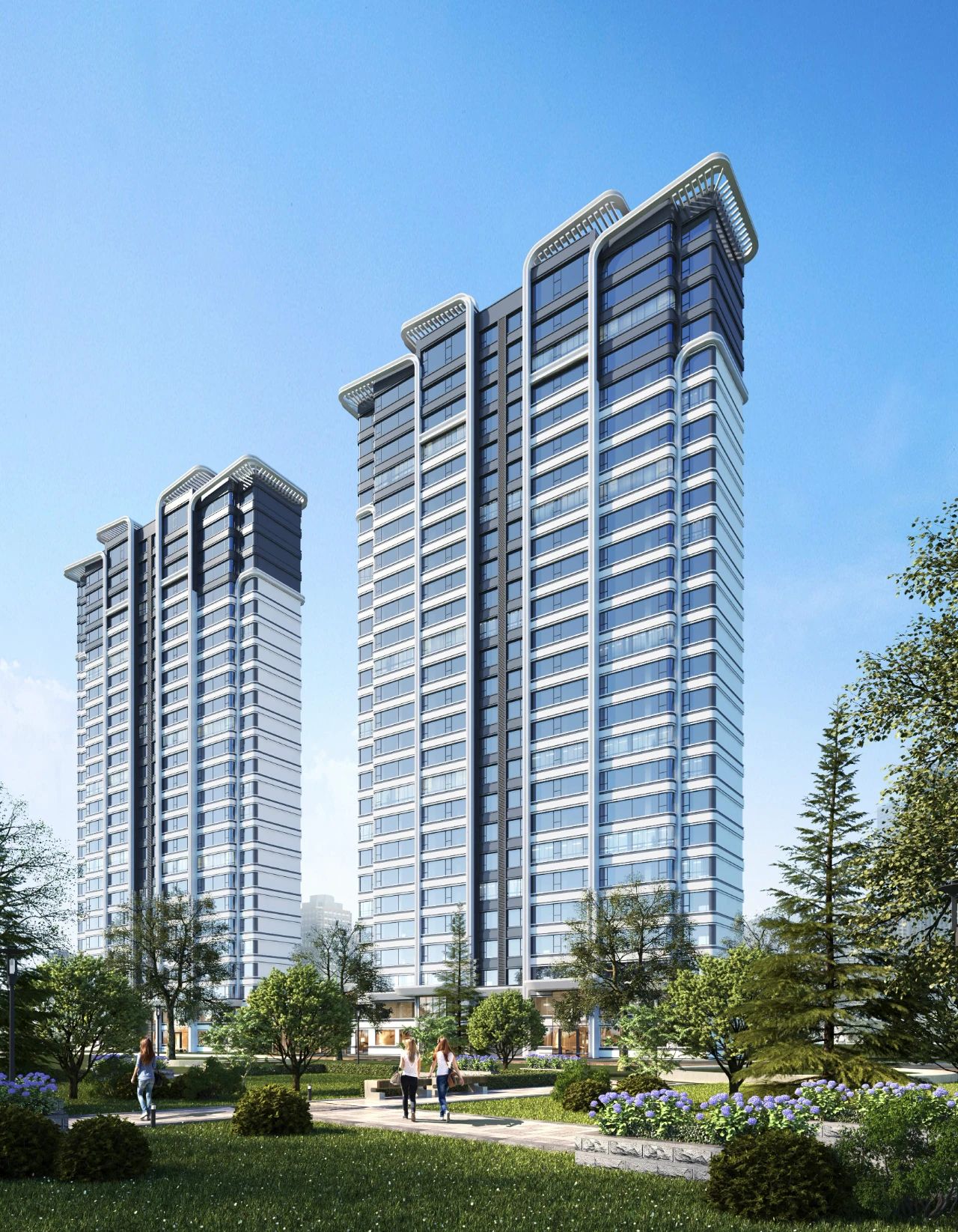 驚艷的超流體立面,強(qiáng)化了建筑的地標(biāo)感 在建筑外觀上,采用了現(xiàn)代簡約的公建化立面,橫向流動的圓弧線條勾勒出建筑的形體,打破了傳統(tǒng)建筑橫平豎直的單一線條,帶來立體的、流暢的視覺沖擊,讓建筑更顯靈動、新穎。
