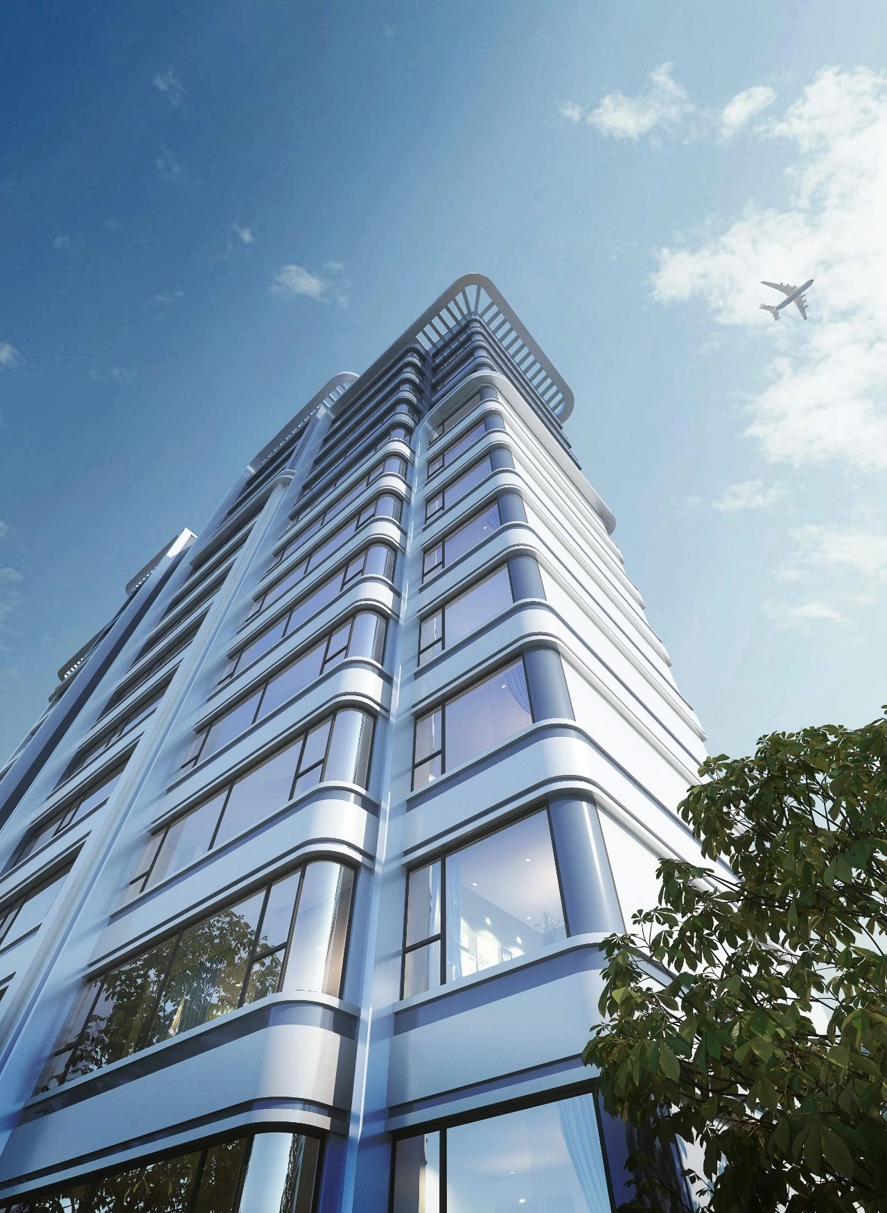 材質(zhì)的考究,充分表現(xiàn)產(chǎn)品的高質(zhì)感 在材質(zhì)運(yùn)用上,選用鋁板+雙層LOW-E玻璃+石材的設(shè)計(jì),具有高級審美與節(jié)能環(huán)保的材質(zhì)組合呈現(xiàn)出獨(dú)有的貴氣,奢華感迎面而來,凸顯了立面的品質(zhì)感、價(jià)值感與尊貴感。 在陽光照耀下,整體建筑更顯輕盈通透,消融了與環(huán)境的邊界,構(gòu)筑高雅而藝術(shù)的視覺體驗(yàn)。