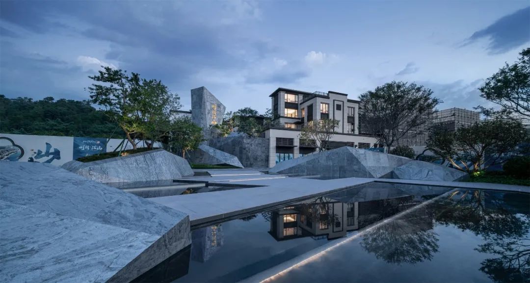 奧園韶關(guān)明月江山的室外景觀園林運用了大量的超薄石材,原有的天然紋理襯托出室外景觀的自然人文景觀,異形墻面可直接裁切施工,大大提升施工效率。