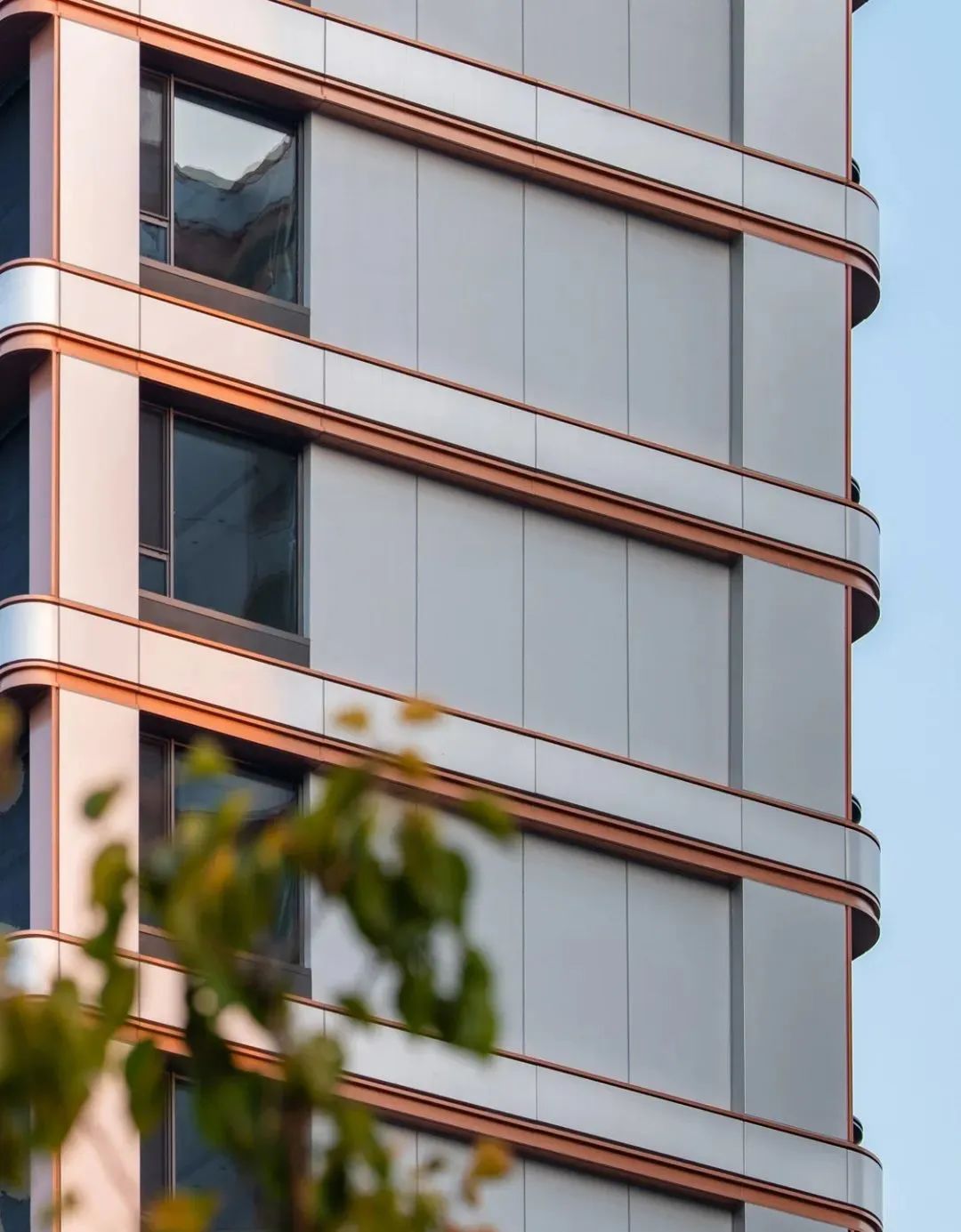 天津中海天空之境項(xiàng)目為了平衡造價(jià),在山墻面和北立面選擇了幕墻搭配金屬漆的材料組合。