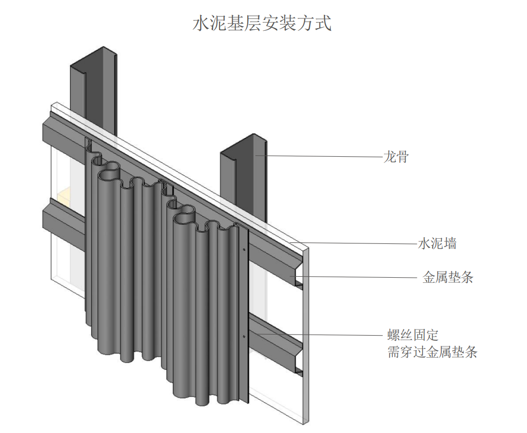 ③ 安裝鋁板:將波紋板放置在龍骨上,根據(jù)需要進行切割,確保尺寸合適。然后使用螺絲將波紋板固定在龍骨上,注意螺絲的緊固力度,不要過緊或過松。