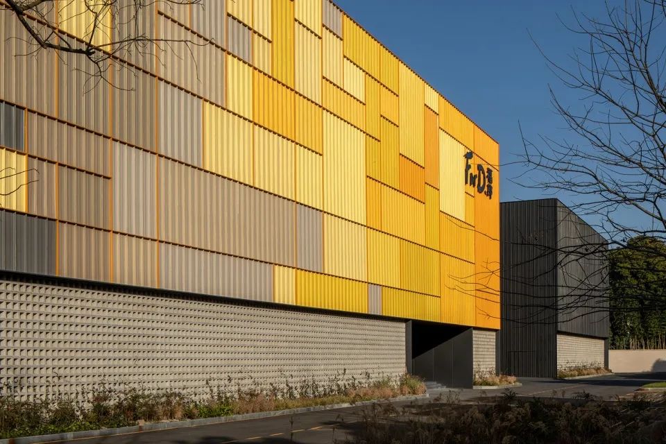 杭州福邸倉庫,設(shè)計(jì)師通過更具平面的語言去做了外立面的“包裹”,簡(jiǎn)潔與清晰的視覺效果傳遞出了設(shè)計(jì)上的高效與快捷??紤]到立面美觀性、材料持久性,鋁鎂錳金屬面板成為了此次建筑外立面改造的關(guān)鍵。