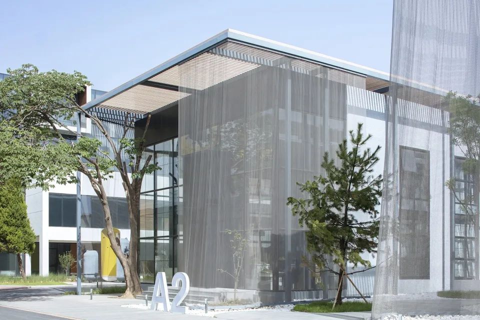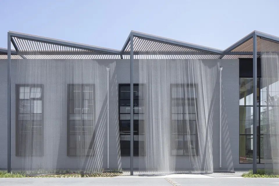 北京Fashion Factory創(chuàng)意工廠改造后的建筑外立面使用了鋼制紡織品材料,像是在大樓周圍輕輕披上遮陽和隱私的金屬幕。