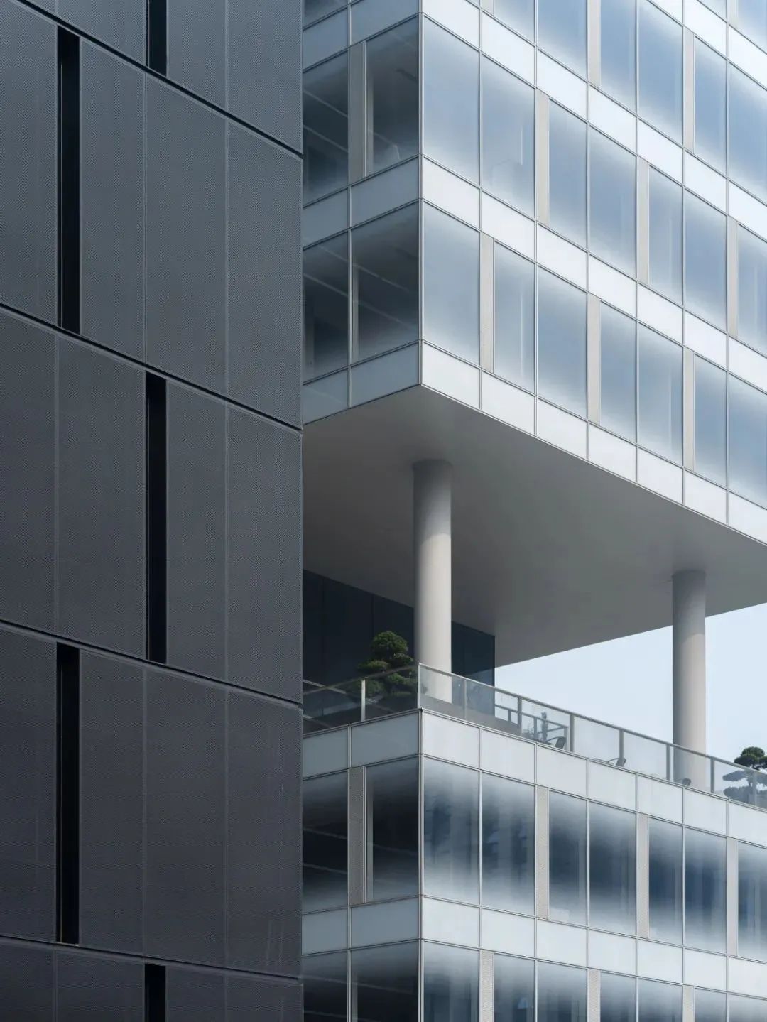 杭州濱綠大廈為順應(yīng)謙和而精致的建筑形象,表皮材料以玻璃、鋁板為主,并通過(guò)妥帖的玻墻比例、精準(zhǔn)的構(gòu)造處理和材料搭接,在形體的沉穩(wěn)與輕盈之間達(dá)成平衡。