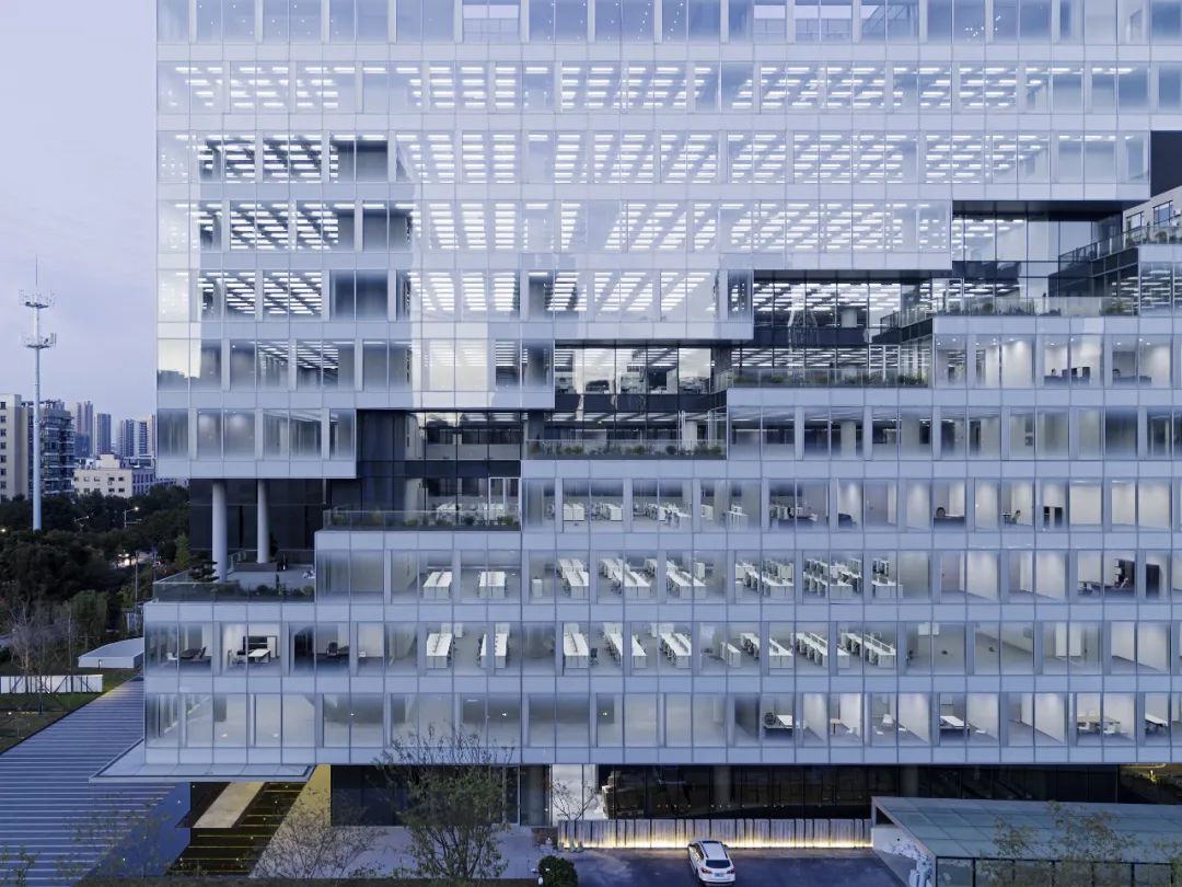 杭州威星智能總部對(duì)建筑具體的外部形態(tài)、內(nèi)部空間、表皮肌理的進(jìn)一步深化,當(dāng)材料和細(xì)部被仔細(xì)考量時(shí),抽象的形式語(yǔ)言才擁有了真正的意義。