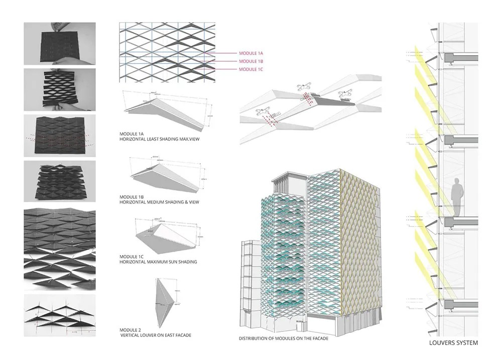 這些菱形百葉巧妙地與白天的太陽(yáng)運(yùn)動(dòng)軌跡相關(guān)聯(lián),以此幫助建筑控制內(nèi)部的溫度,并減少了對(duì)能源密集型人工冷卻的需求。