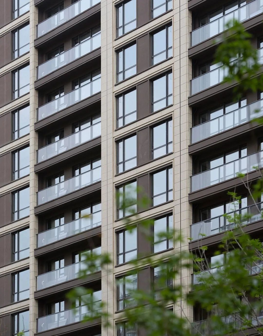濟南融創(chuàng)文旅城·紫檀園窗框外EPS線條模擬石材勾勒出精致的窗眉、凹槽豐富層次細節(jié),主墻面以仿卡麥真石漆飾面,咖色真石漆為基調(diào)色,基座處采用高檔英國棕干掛石材,頂部飛檐結(jié)合咖色金屬鋁板營造更具高級質(zhì)感的建筑立面印象。