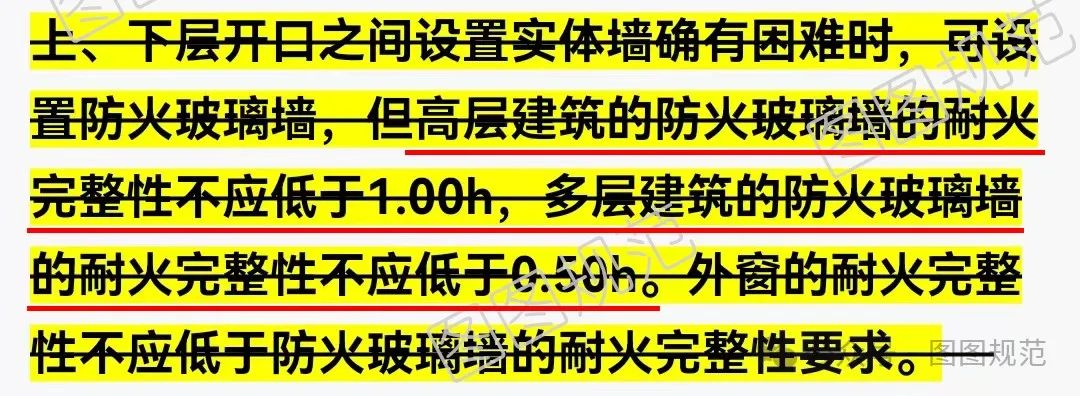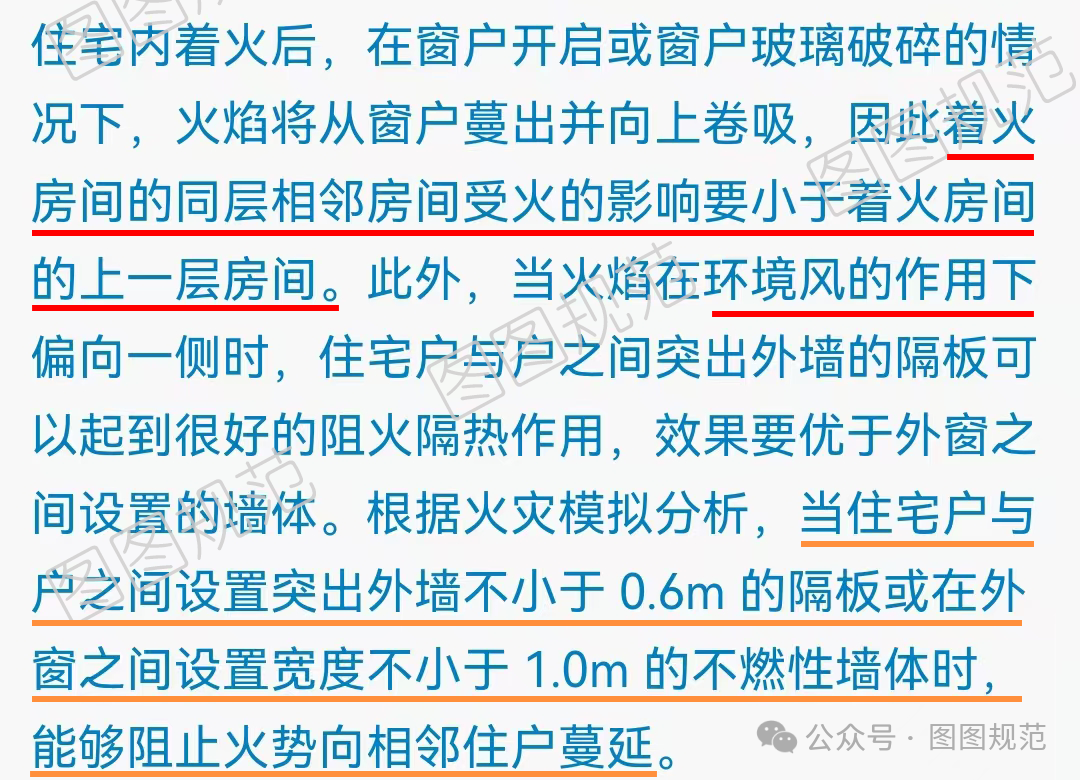 分戶墻防火措施,水平方向要求相對于豎向方向要求要低,在《建筑設(shè)計防火規(guī)范》 6.2.5條文說明中也有明確解析: