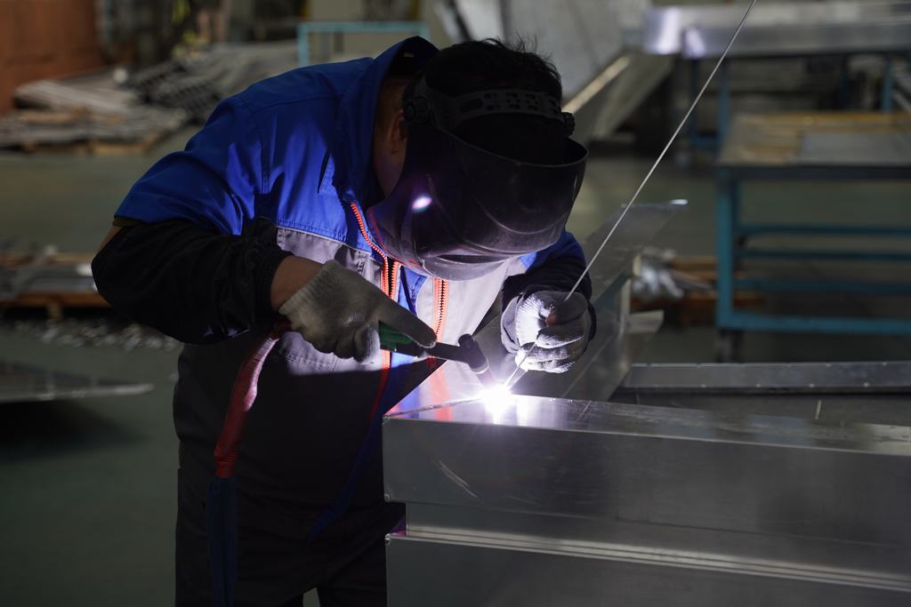 1 胚料剪板 >> 這是工廠在制作鋁板的第一步工藝哦!師傅根據(jù)加工圖尺寸下料,采用最準(zhǔn)確節(jié)省方法開(kāi)料,在剪板過(guò)程中注意平整度,嚴(yán)格按照下料單確保尺寸偏差在規(guī)定的范圍內(nèi),快速精準(zhǔn)有序的加工。 2 數(shù)控沖床 >> 朋友們數(shù)控沖床聽(tīng)著是不是很專業(yè)呢?其實(shí)它就是鋁板中的“沖孔”,按客戶給的圖紙對(duì)下料板開(kāi)角,做到固定和準(zhǔn)確,沖孔準(zhǔn)確,錯(cuò)開(kāi)距離,保證安裝需要。過(guò)程中對(duì)鋁板正面保護(hù)完整,做到不接觸地面、不碰到機(jī)器、無(wú)聲操作。 3 折彎成型 >> 這也是很考驗(yàn)師傅們技術(shù)的一道工藝?yán)?,根?jù)圖紙要求折邊,在下模前墊布,防止損傷鋁板,然后上折彎?rùn)C(jī)折彎。操作過(guò)程保證長(zhǎng)度、寬度、對(duì)角線尺寸、折邊角度、組角縫隙不超出規(guī)定偏差。 4 燒焊角 >> 我想“燒焊”在生活中大家都是常見(jiàn)的一幕了,鋁板為后期打磨需要,在拼角時(shí)棱角適當(dāng)突出,內(nèi)角要保持平整、完整,保證產(chǎn)品質(zhì)量。工作人員注意焊接及送焊絲速度,防止影響質(zhì)量的誤查發(fā)生,最后達(dá)到焊縫平整、自然效果。 5 組裝角碼、加強(qiáng)筋 >> 鋁板為什么要組裝加強(qiáng)筋呢?因?yàn)閷挾瘸^(guò)680cm的鋁板為保證其表面平整度都組裝加強(qiáng)筋使鋁板更加硬朗;角碼的目的就是現(xiàn)場(chǎng)安裝固定鋁板,且角碼都是錯(cuò)位的,避免安裝時(shí)兩個(gè)角碼沖突。 6 打磨、拋光 >> 前面我說(shuō)到焊接之后的鋁板到打磨就是這啦,它的目的就是為保證產(chǎn)品的表面光潔,把表面的焊渣去除掉,這個(gè)過(guò)程檢查鋁單板有無(wú)劃痕、表面磨損等現(xiàn)象,然后就是經(jīng)過(guò)拋光啦,使拼角處有角、有楞、自然加美觀! 鋁板的噴涂工藝