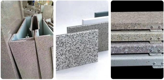 仿石材鋁單板是在鋁單板的基礎(chǔ)上,通過特殊的噴涂工藝加工,使鋁單板具有強(qiáng)烈石材立體感的新型裝飾材料