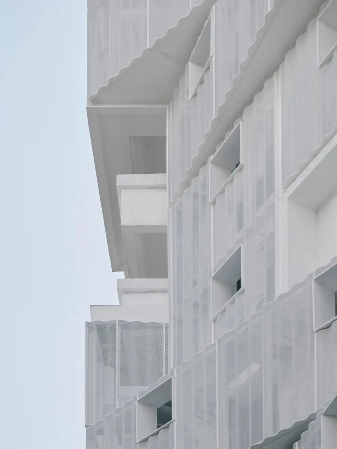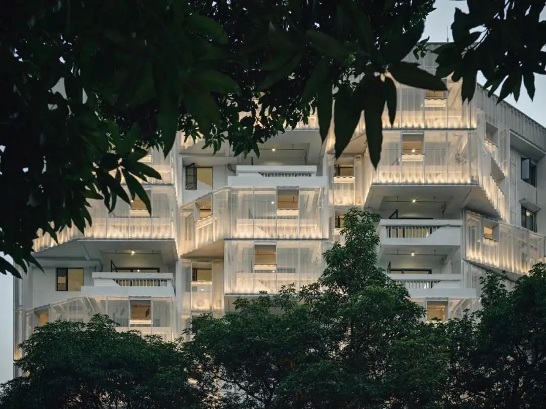 而背后與城中村內(nèi)原有建筑的“對話”也突出了新與舊語言的對比,與周邊大小建筑共生的狀態(tài)強調(diào)了城市立面肌理層次的“拼貼”感。