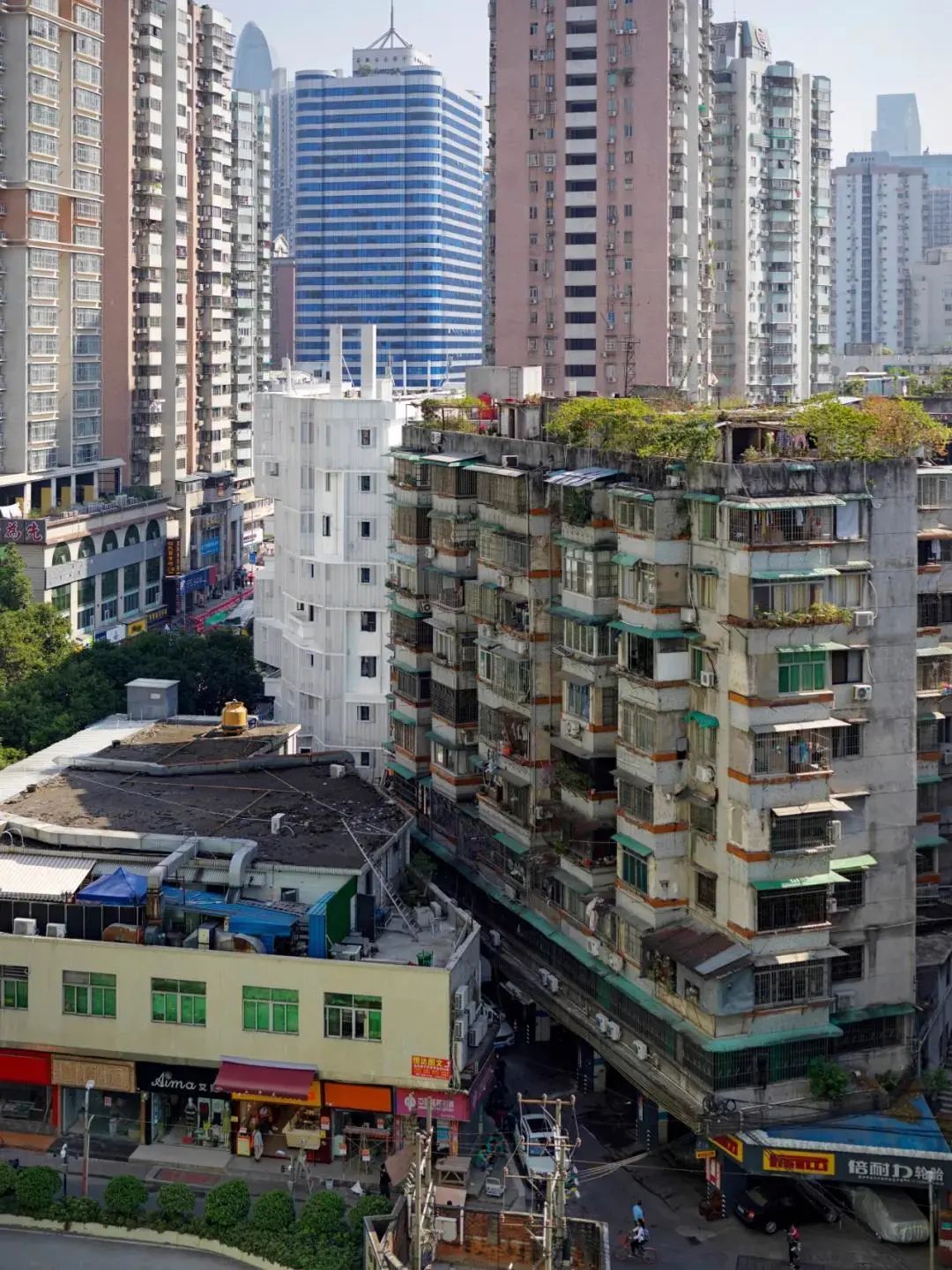 圖中便是越秀區(qū)的一處城中村,白色的建筑是一座公寓樓