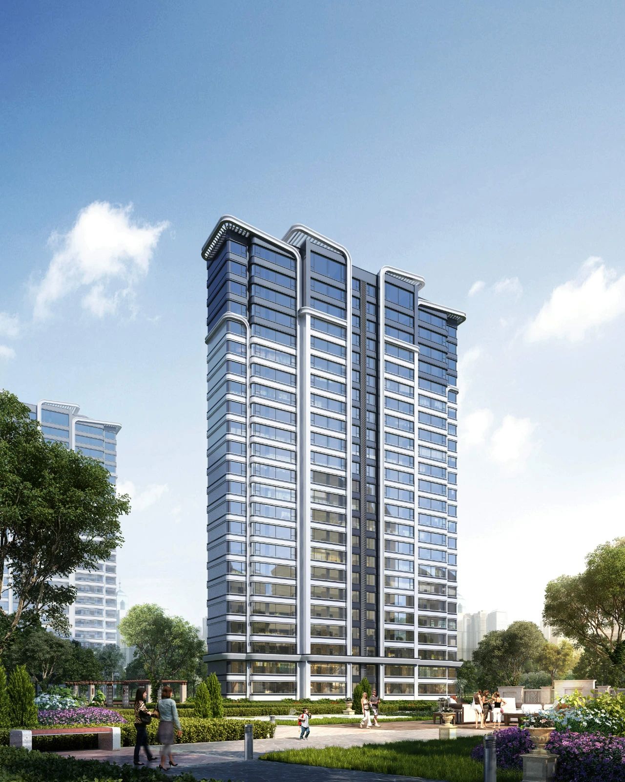 精美的細(xì)部設(shè)計(jì),豐富建筑立面表情 在建筑頂部引入了富有標(biāo)識性的雙層挑檐造型,增強(qiáng)了屋檐與頂層之間的進(jìn)退變化,提升了建筑的價(jià)值感和識別性,并與周邊形成豐富的城市天際線。