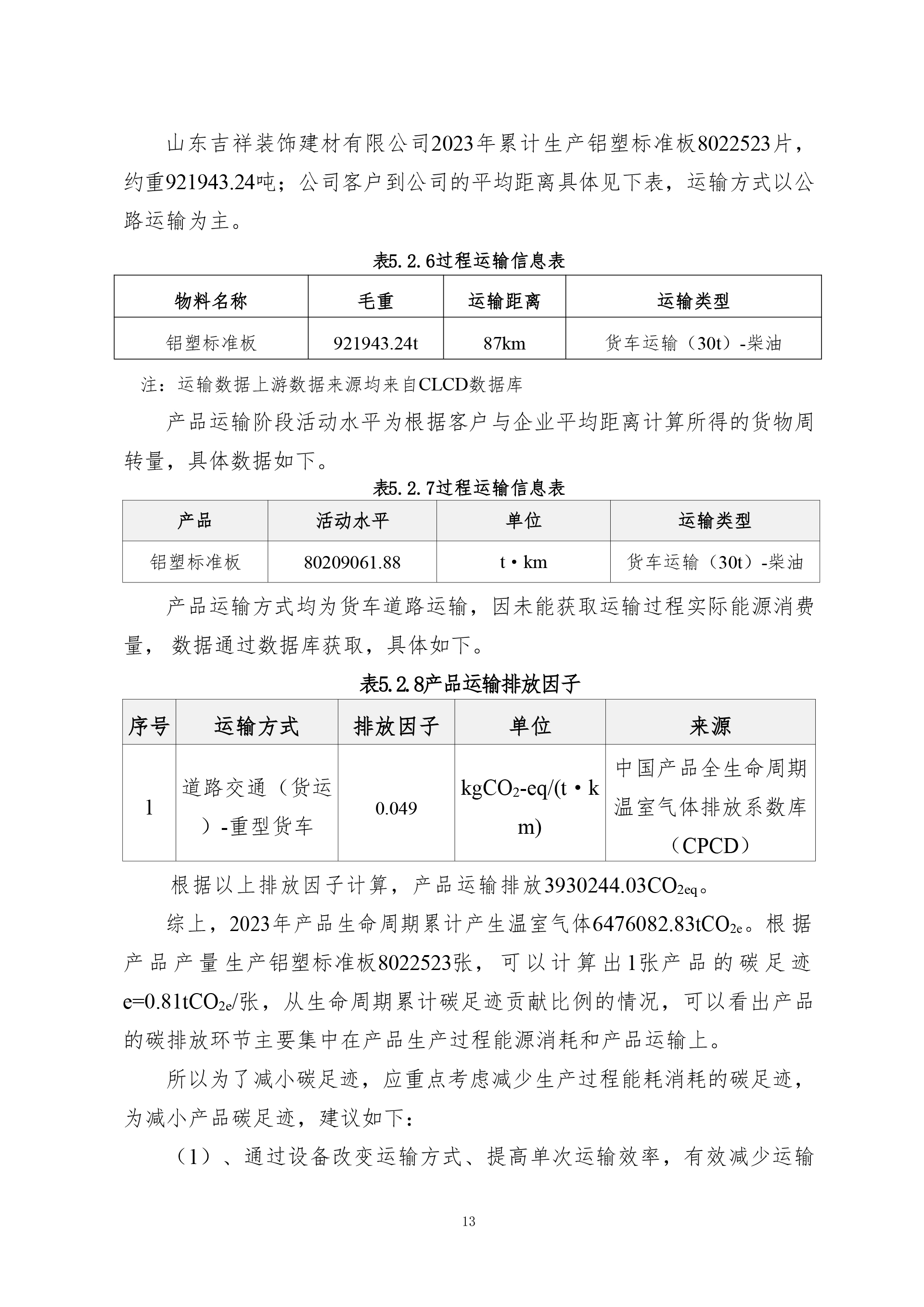 1張鋁塑標(biāo)準(zhǔn)板產(chǎn)品碳足跡評價報告