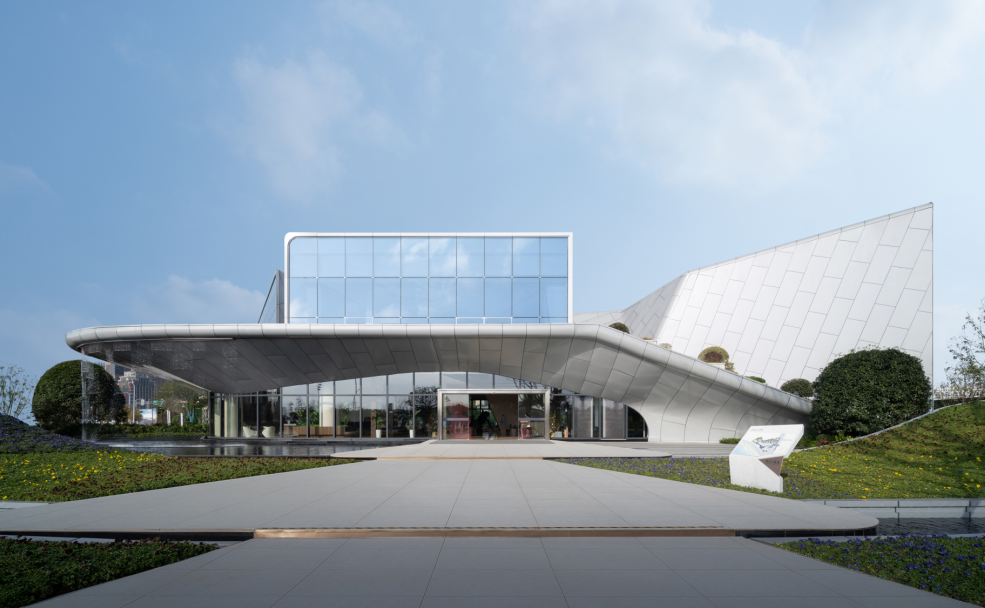 金昌·煙波辰鷺示范區(qū)采用了雙曲鋁板,流線(xiàn)形體的流暢弧度,散發(fā)出現(xiàn)代感與藝術(shù)感,但對(duì)于制造和安裝而言,這是比較艱難的挑戰(zhàn)。