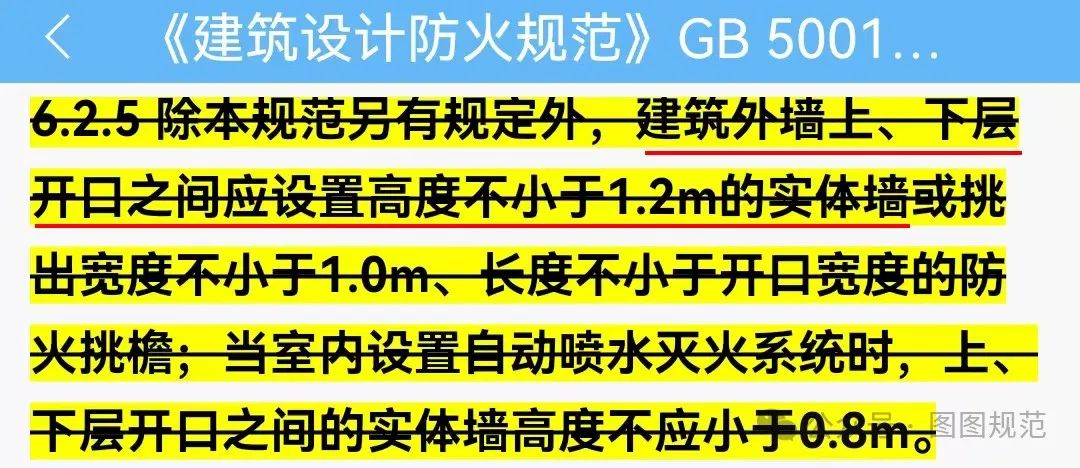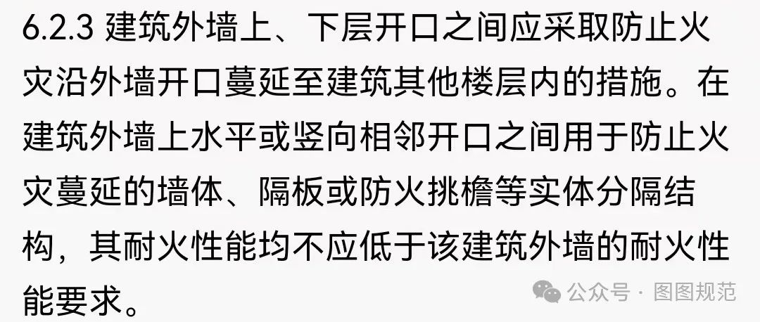 可以看到,外墻上、下層開口之間必須采取防止火災(zāi)沿外墻蔓延的措施。
