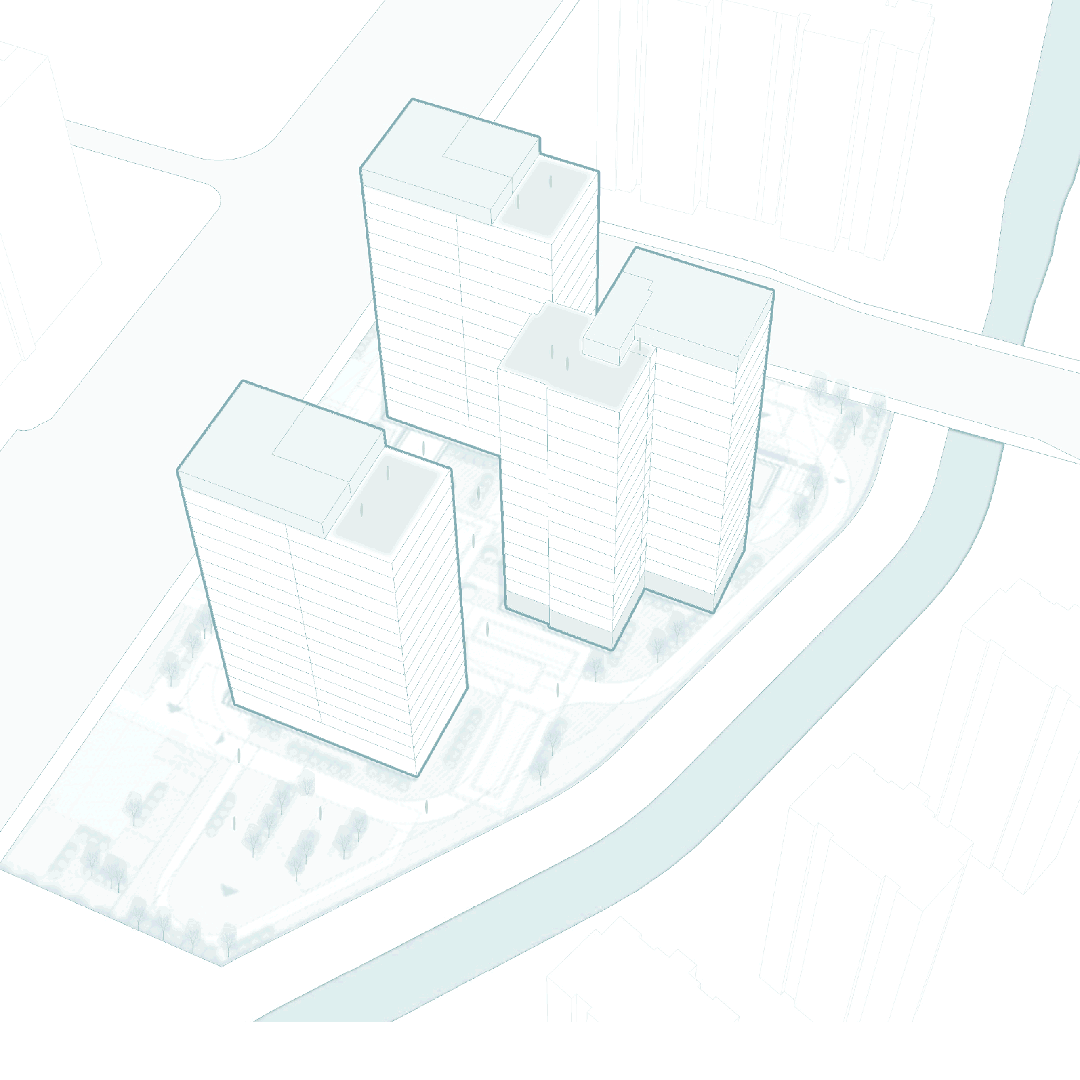在極其嚴(yán)苛的用地條件下,BA設(shè)計(jì)團(tuán)隊(duì)傾盡心血,力求最大化利用城市景觀滿足高端住宅的視覺(jué)體驗(yàn),將每一寸空間都轉(zhuǎn)化為視覺(jué)與心靈的盛宴。經(jīng)過(guò)多輪推敲,建筑體塊以“品”字型排列,既保證了最大化的樓棟間距,又不失歸家的莊嚴(yán)儀式感。