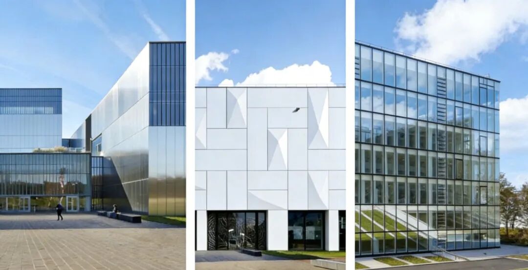 不銹鋼、鋁板、玻璃幕墻憑借其現(xiàn)代感十足的外觀