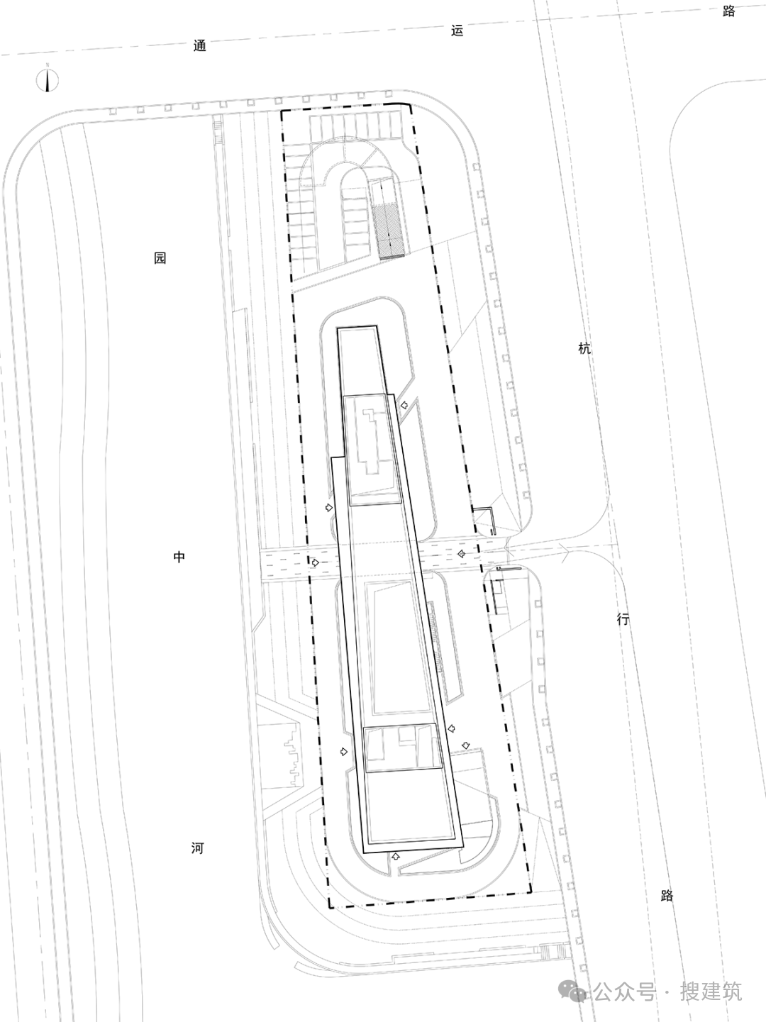 在滿足規(guī)范與基本空間使用訴求的基礎(chǔ)上,設(shè)計順應(yīng)場地形態(tài),將 “100m” 水平轉(zhuǎn)換為建筑長度,以橫向舒展的方式沿河展開。