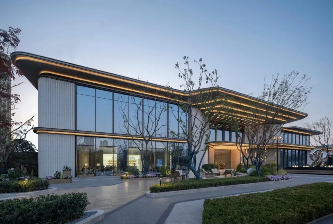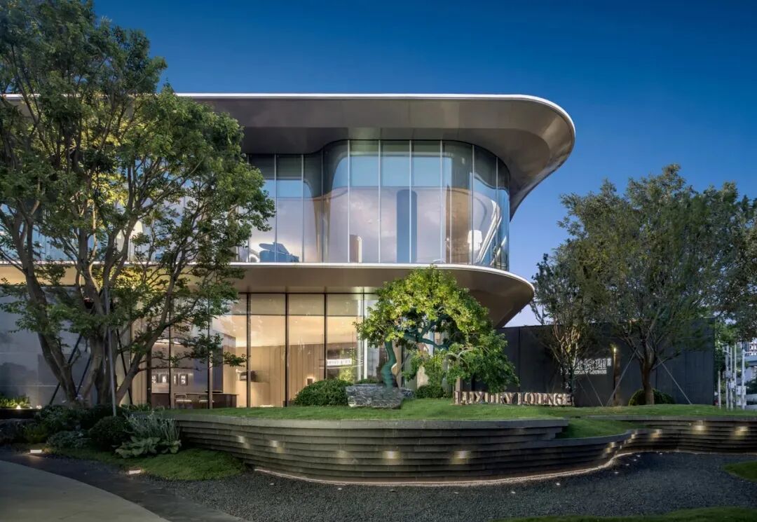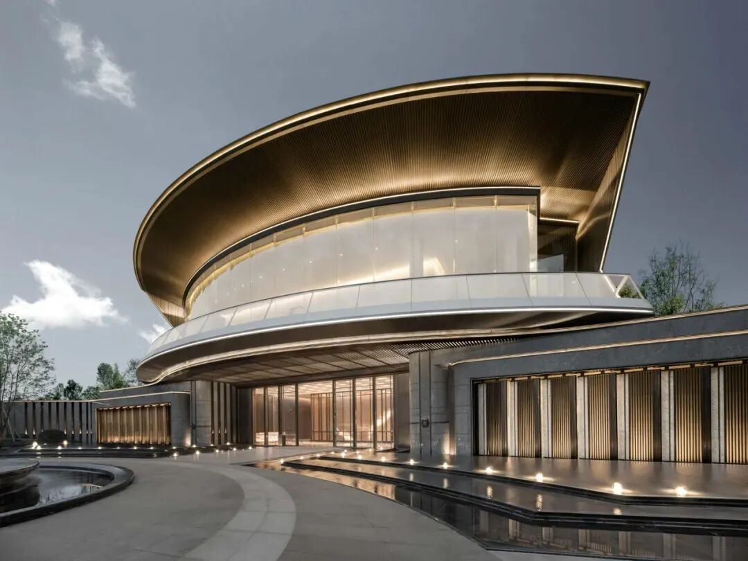 示范區(qū)建筑外立面設(shè)計(jì)采用了全鋁板和玻璃幕墻體系的組合,摒棄繁雜的外立面裝飾設(shè)計(jì),采用超流體風(fēng)格,建筑師在設(shè)計(jì)過(guò)程中特別關(guān)注立面比例控制和曲線形體造型的精致呈現(xiàn),每個(gè)細(xì)節(jié)都經(jīng)過(guò)精心計(jì)算和布局,確保整體的協(xié)調(diào)和諧,使建筑外觀更加流暢優(yōu)雅,營(yíng)造精致秩序感和簡(jiǎn)潔高雅氣質(zhì)。