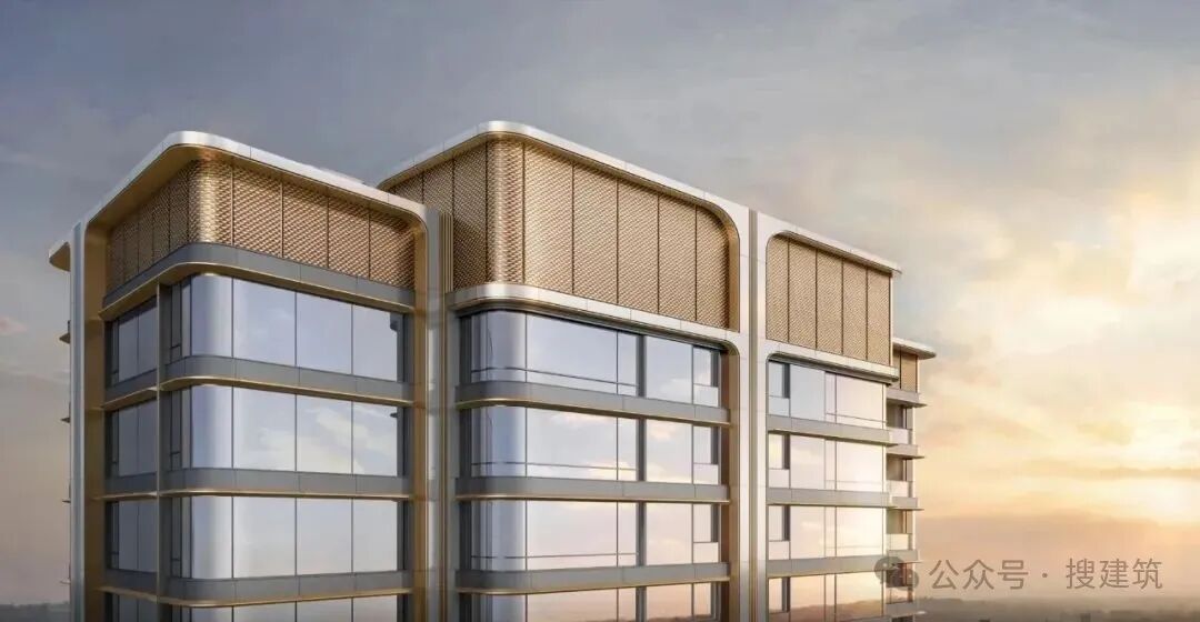 比如,杭州融創(chuàng)·云潮府在山墻面增加了涂料和金屬兩種材質(zhì),使得形體層次更加清晰豐富。而為了提升涂料面的精致度,優(yōu)化了節(jié)點設(shè)計,以U形金屬嵌槽代替涂料分縫,塑造金屬板材劃分的效果,化解了大面涂料的突兀感。